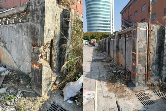 ③充電站圍墻破裂修補前 充電站圍墻破裂修補后
